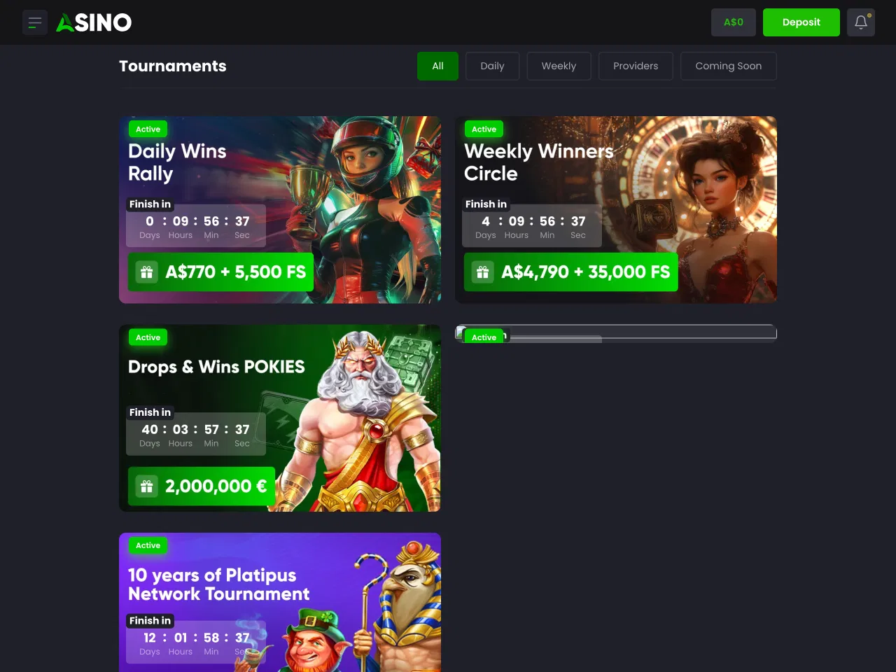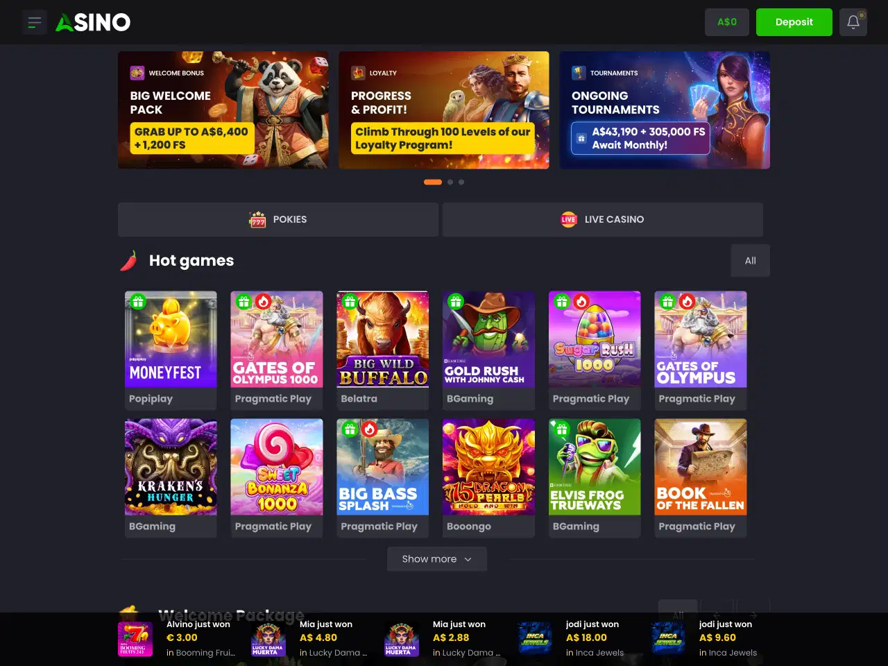 Asino partners with over 80 gaming providers, including industry giants like BGaming, Microgaming, Yggdrasil, and Platipus, known for their high-quality pokies. For an exceptional live gaming experience, titles from Evolution Gaming and Pragmatic Play are also available. This impressive variety of providers guarantees that players can explore a diverse range of games, each offering unique themes, mechanics, and exciting features.