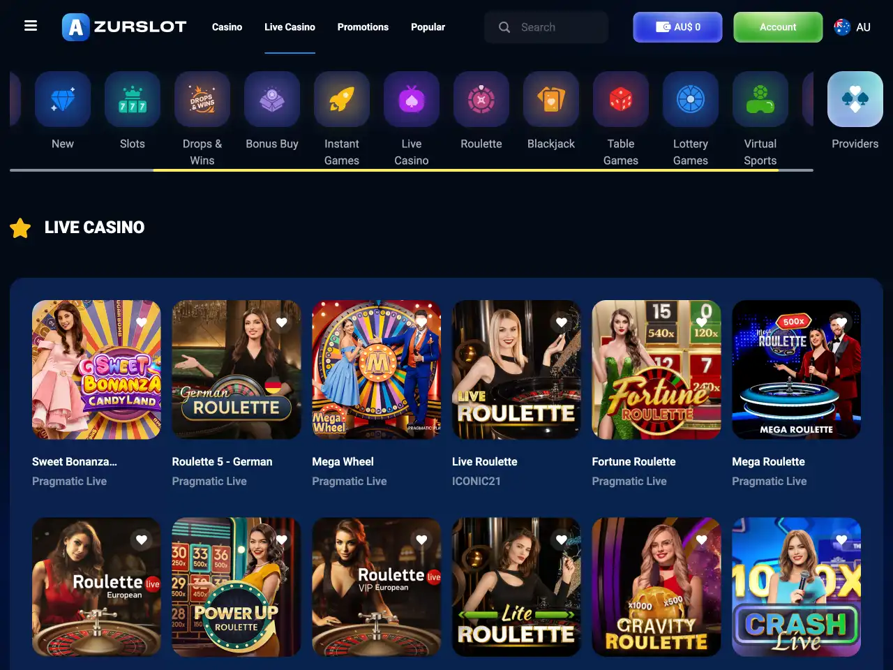 AzurSlot divides its library into clearly labelled categories, helping players navigate easily between standard pokies, Bonus Buys, and Drops & Wins titles, all just a tap away from the main menu. Most slots include a demo mode, though mobile optimisation can be hit or miss. Some games suffer from long load times or layout glitches on smaller screens. Table game fans will find numerous versions of roulette, blackjack, and baccarat, along with keno, craps, and others. The live casino features games from multiple providers, including full-screen tables, listed limits, and dealer previews.