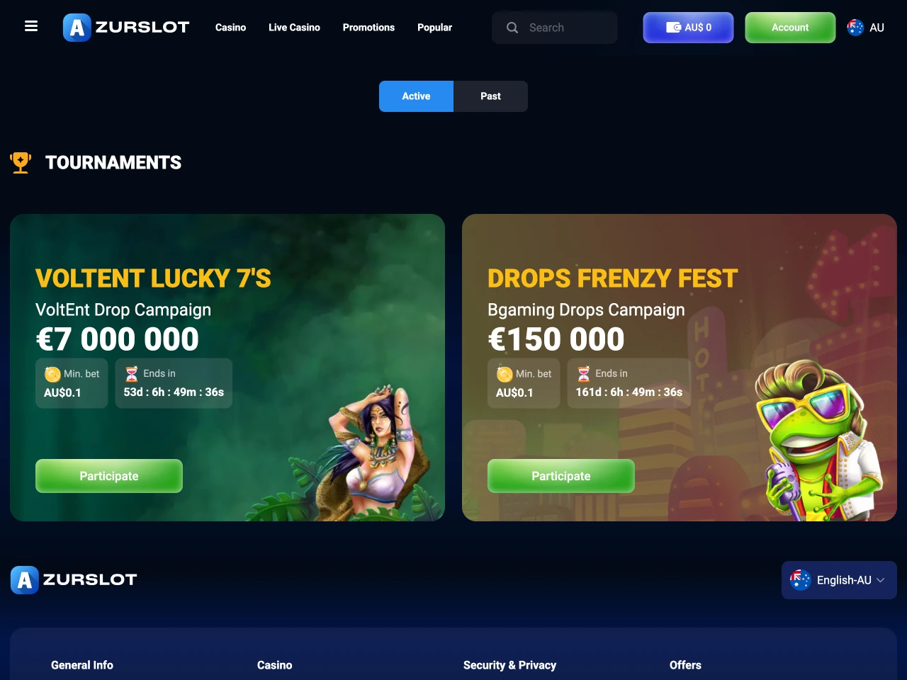 AzurSlot accepts players from Australia, offering account registration, deposits, and withdrawals in AUD. Geolocation restrictions are applied automatically to prevent access from unsupported regions. Licensing and legal information is consistent across all available versions. The platform operates in English, and content such as terms and promotional material is presented without region-specific adjustments.