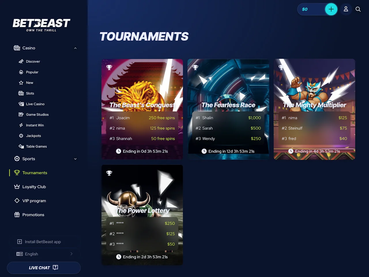 BetBeast provides players with a full diversity of games, despite the fact that there are only 1,500 titles. On the website, you can also collect stamps, which can be exchanged for various bonuses and used to get into the VIP program. Spinning the Wheel of Luck at BetBeast can bring players free spins, a no-wagering cash prize, or a deposit bonus. Users can spin the wheel 2 hours after each deposit they make. The casino offers players daily rewards, which may include free spins, spins on the Wheel of Luck, and cash bonuses. BetBeast also rewards all active players with a program named Perks, which features 100 levels and grants additional bonuses for reaching new levels.