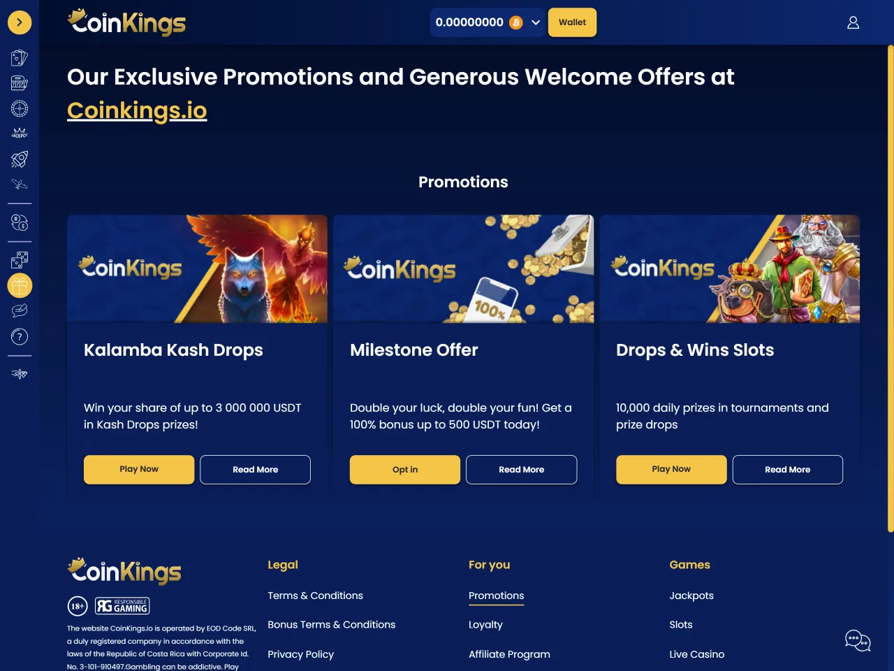 CoinKings Casino’s website is greatly optimised for players’ use. The loading time is around 2–3 seconds, and all the buttons and features work well, without any visible bugs or issues. We found the website easy to navigate, and you can quickly find everything you need.