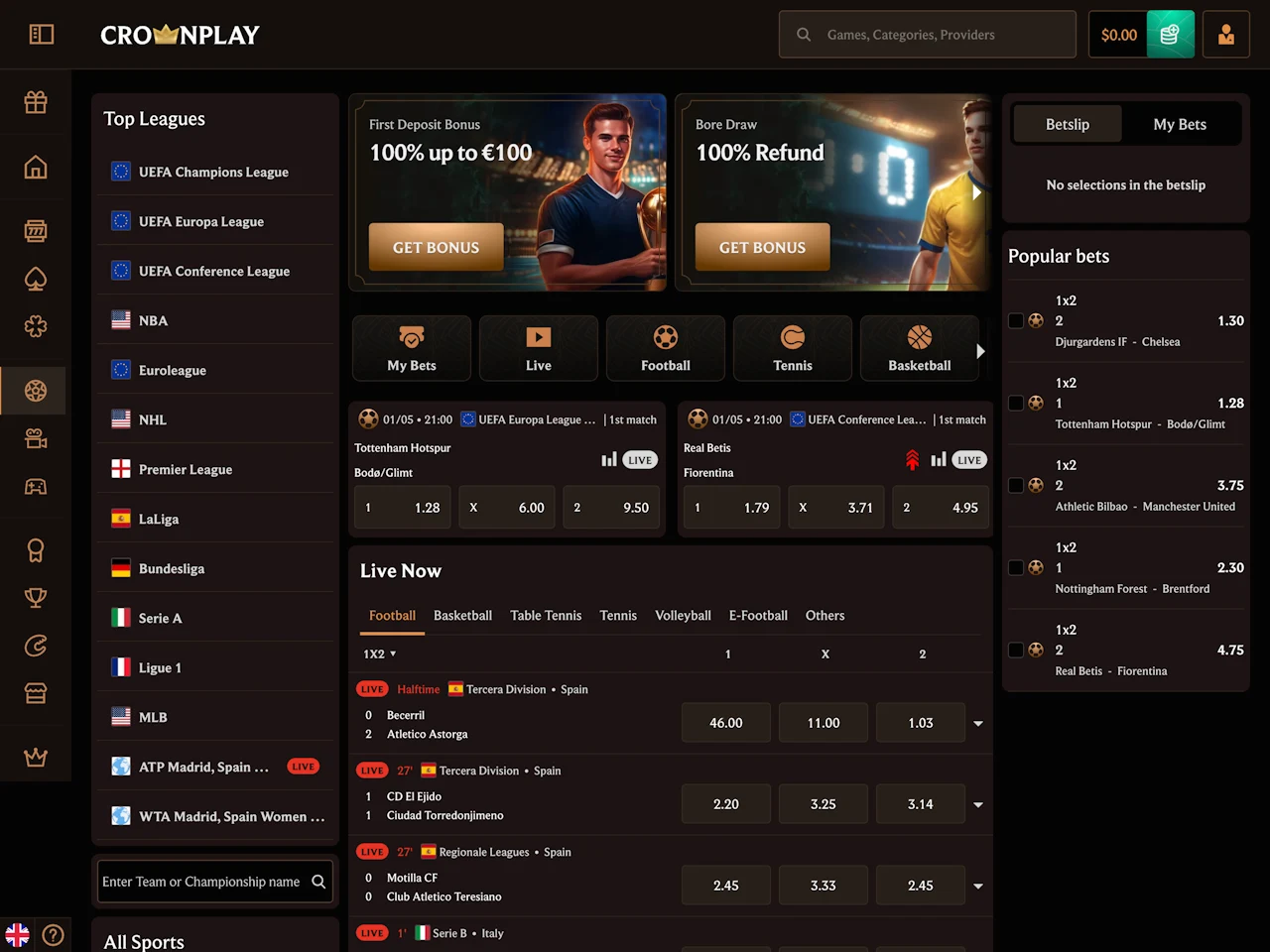 CrownPlay’s layout is clean, with fast-loading pages and clear menus. The lobby highlights key offers, and game categories are easy to browse. Live Casino has clear tabs and dealer previews, though no demo mode. Bonuses and tournaments are displayed in blocks with visible terms and countdowns. Sports betting uses a familiar layout with real-time odds. Navigation feels smooth across desktop and mobile.