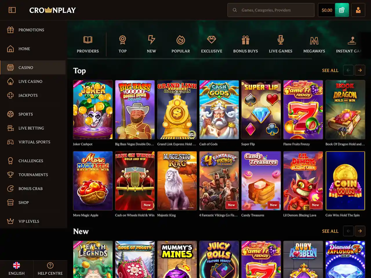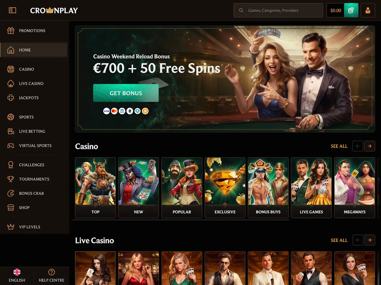 Crown Play lists more than 50 game providers. These include well-known names like 1x2Games, Gamzix, and Play’n GO, as well as niche developers such as All41 Studios and Amigo Gaming. Games from each provider are searchable by name or tag. We tested this across multiple sections — it works fast. Games launch without bugs. However, some studios don’t show return-to-player data until after loading. Still, overall access is stable.