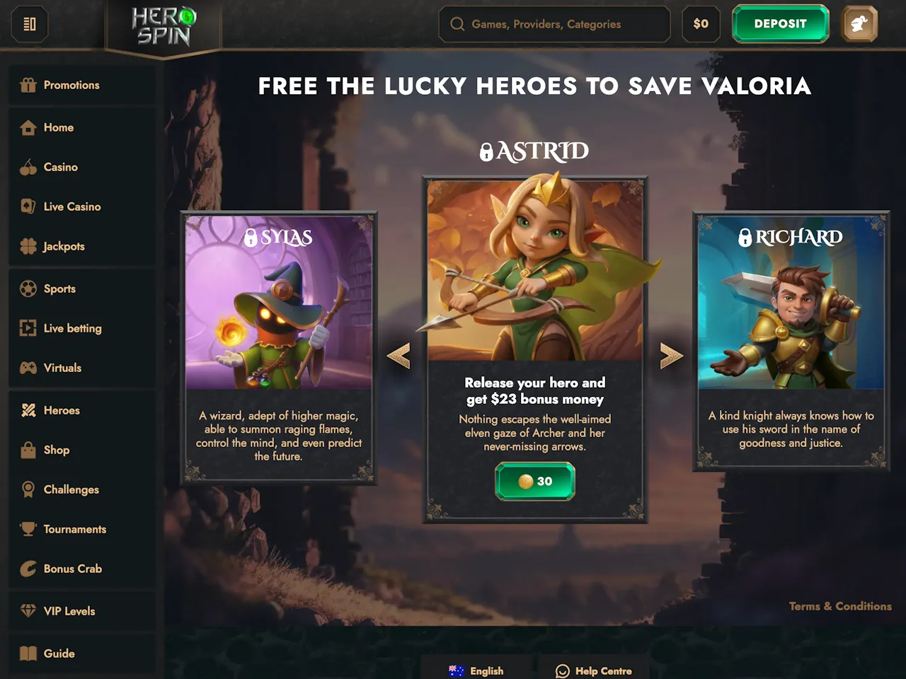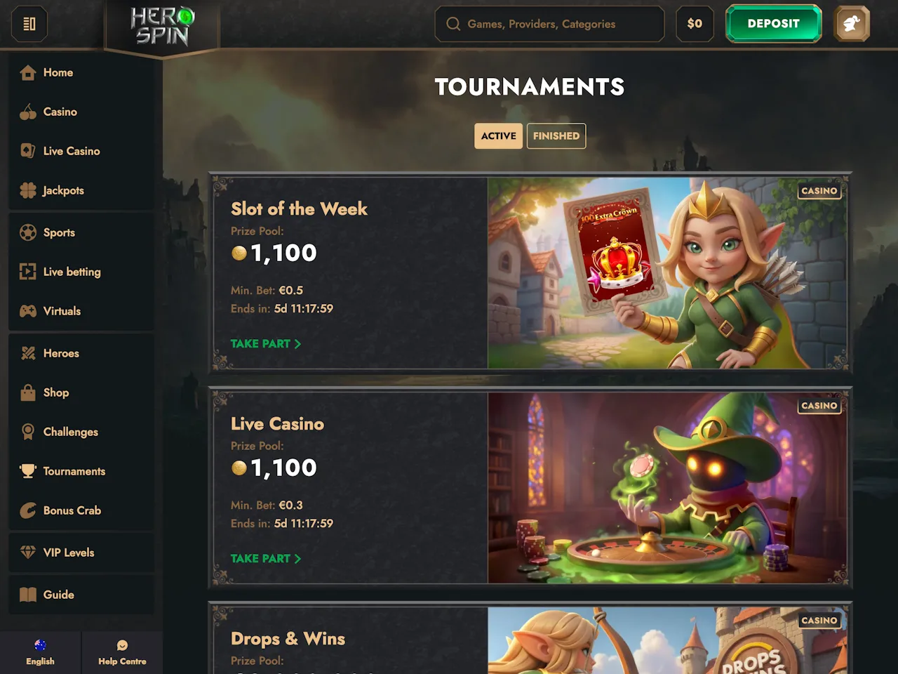 HeroSpin Casino offers a lineup of over 13,000 games, including 750+ live dealer games, in the slots, table games, and specialty categories. A standout feature is the Heroes gamification system, in which players unlock characters and earn rewards based on gameplay activity. The comp coins system allows players to accumulate coins by wagering, which are exchangeable for bonuses or spins at the Bonus Store. There are also weekly challenges and tournaments that keep players highly engaged, with fresh objectives and rewards in the form of bonuses, cash, and comp coins. For repeat players, the five-tier VIP program provides cashback, increased withdrawal limits, and personal managers at higher levels, providing long-term value.