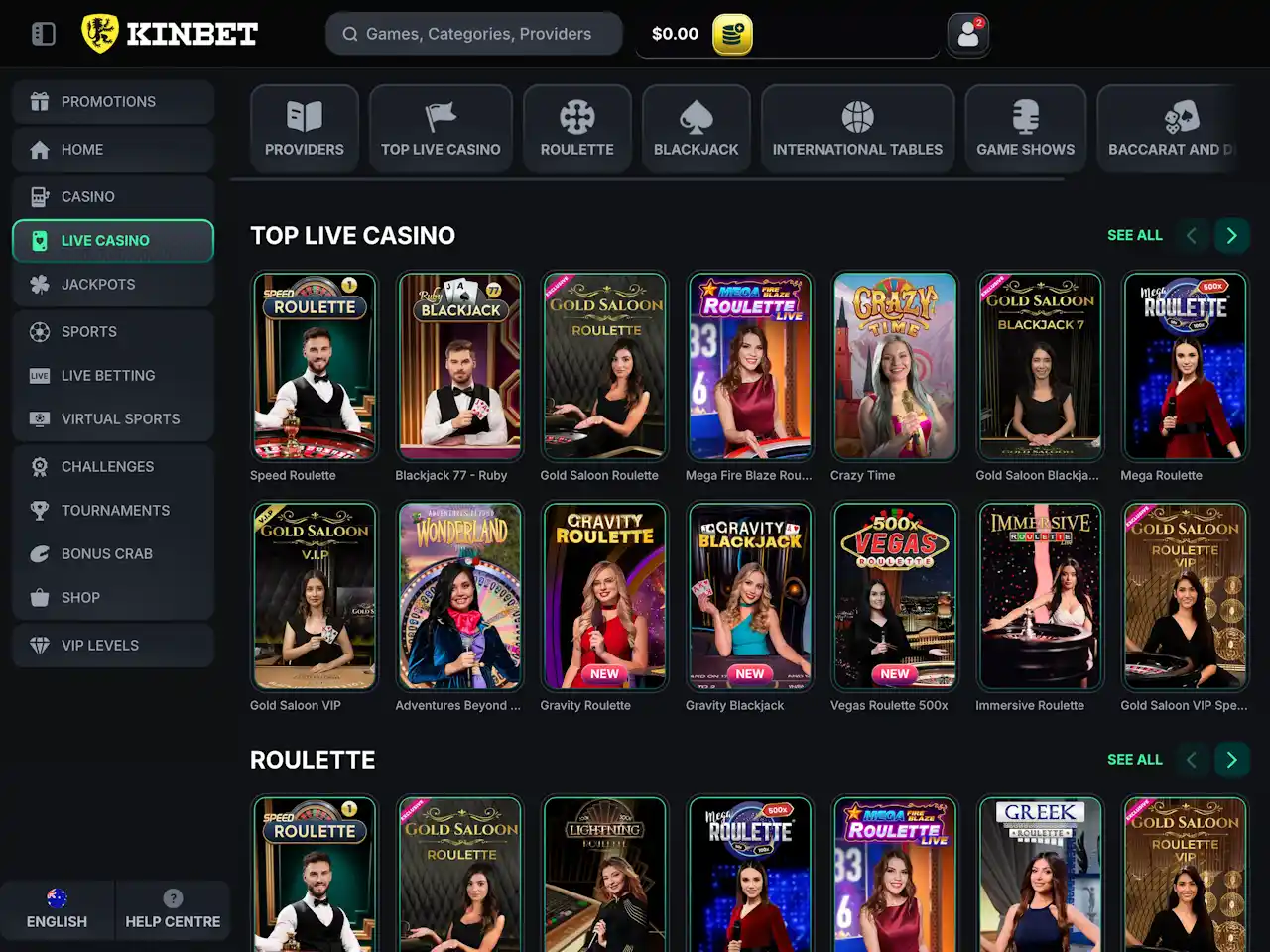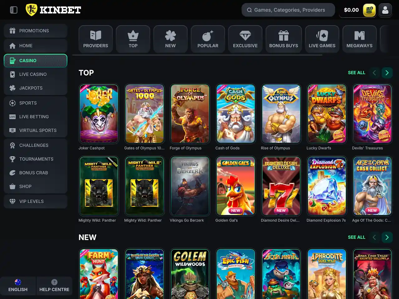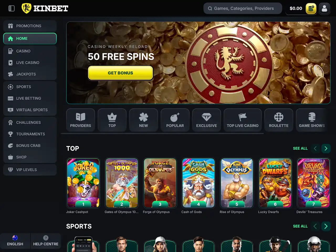 Kinbet Casino offers a variety of games, including pokies, table games, and live dealer options. Yet, pokies remain the most beloved among Australian players. That is why Kinbet offers a vast selection of pokie types, such as classic three-reel games, modern video titles, and even progressive jackpots. Popular options feature diverse themes and mechanics, catering to various player preferences, and they include Locker Cashpot, Cash of Gods, and Gates of Olympus 1000. Players can additionally explore categories such as Megaways and Bonus Buy.