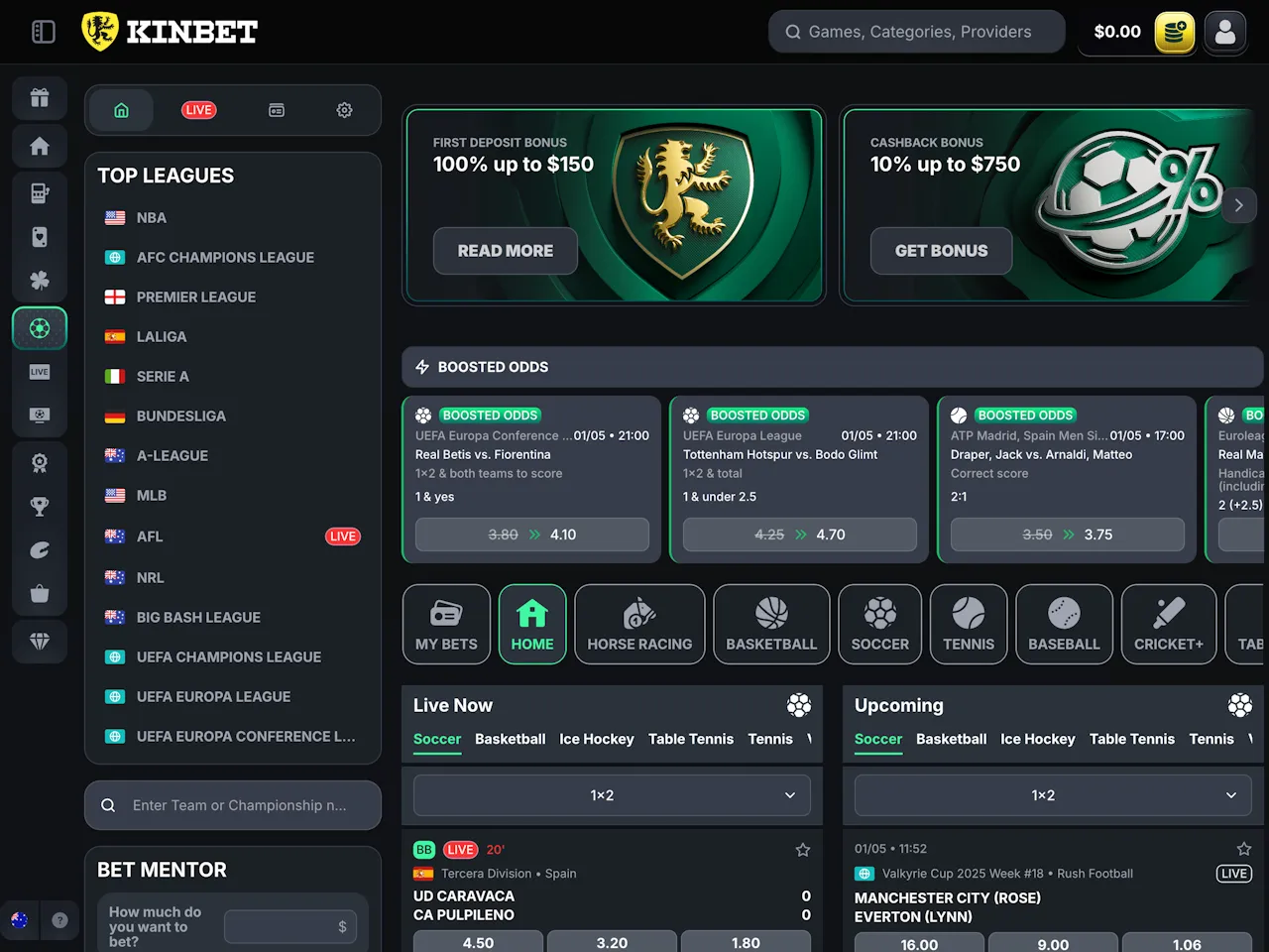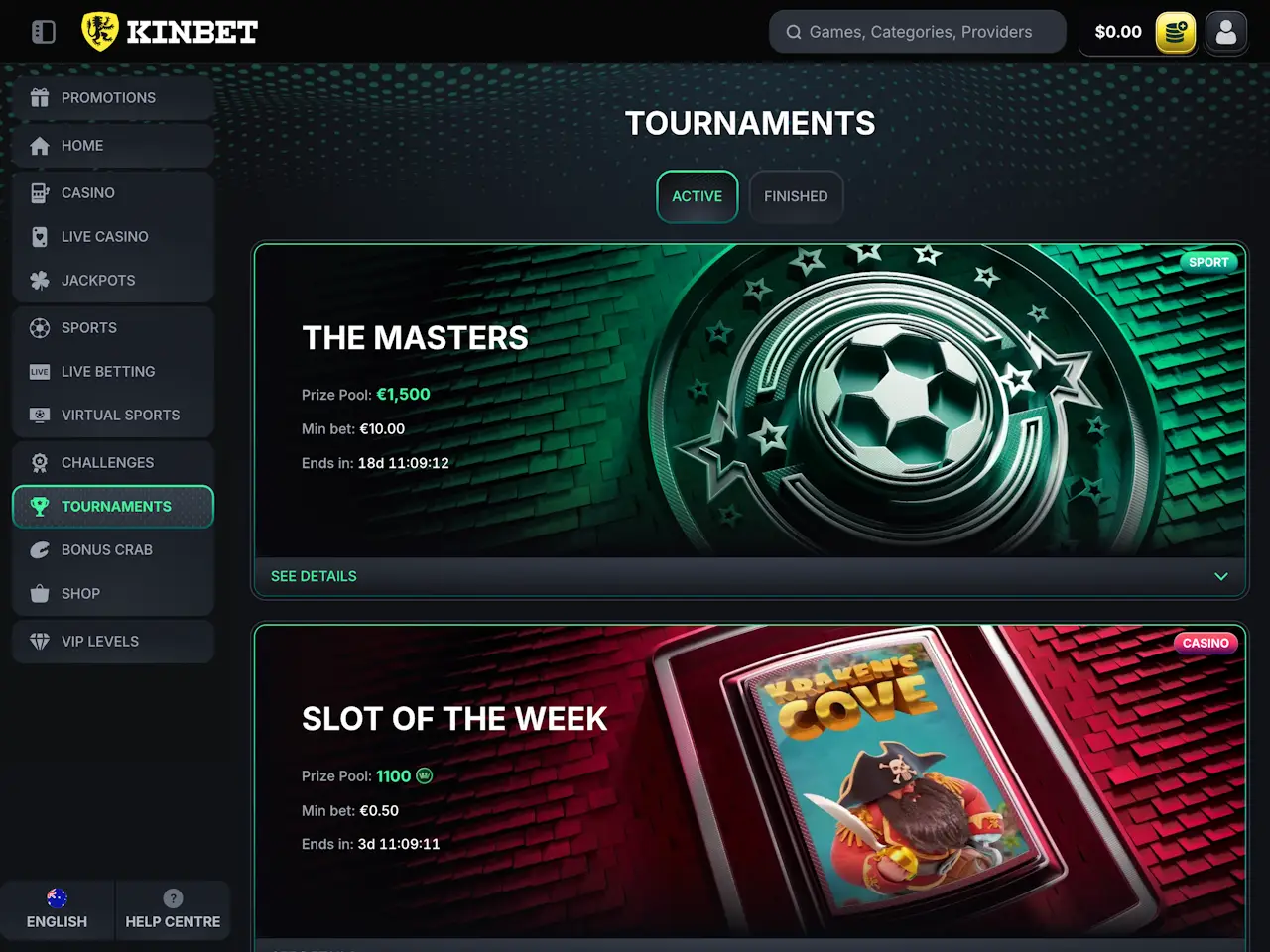 Kinbet offers a well-optimised gaming platform, ensuring a seamless and user-friendly experience. With a smooth-operating dark sport-themed design, the website provides intuitive navigation, fast loading speeds, and an easy-to-use search function, allowing players to access their favourite games with ease.