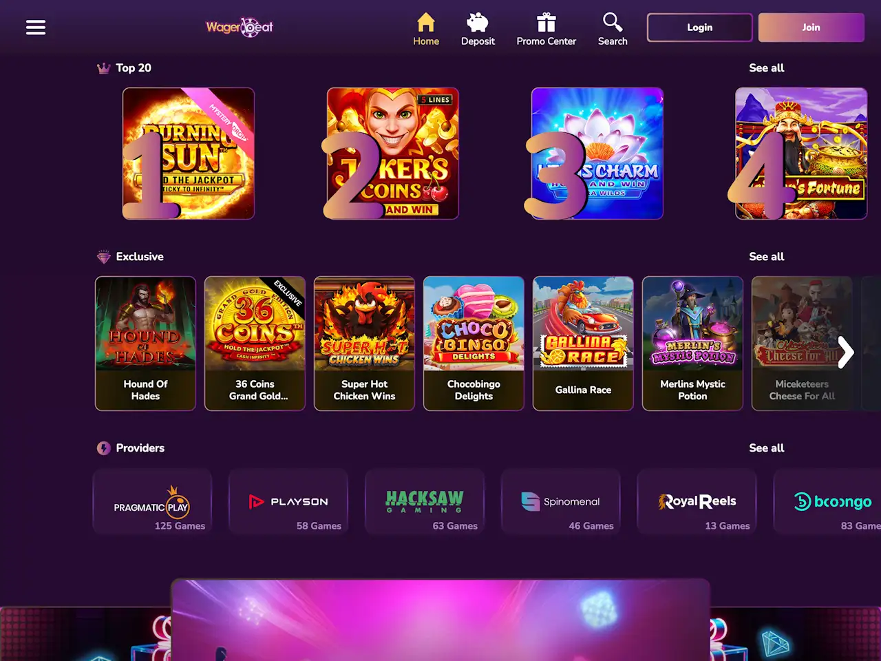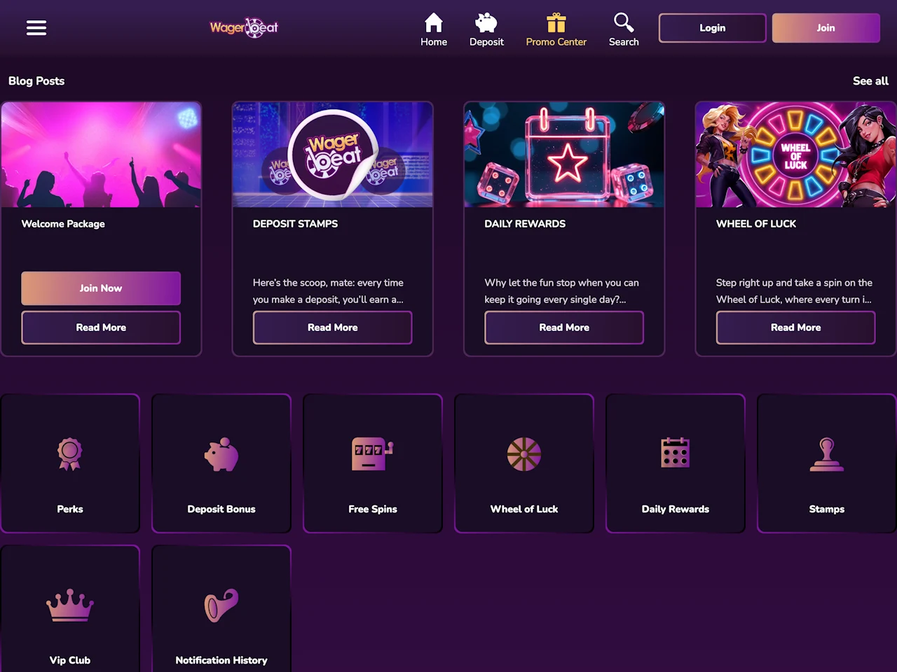 Wager Beat offers players a wide variety of games, even though the selection includes just 1,500 titles. On the platform, you can earn casino points known as stamps, which are redeemable for different bonuses and can help unlock access to the VIP program. Spinning the Wheel of Luck at Wager Beat can award free spins, no-wagering cash prizes, or deposit bonuses, and it is available two hours after making a deposit. The casino also provides daily rewards that might include free spins, Wheel of Luck spins, or cash bonuses. All active users are further rewarded through a program called Perks, which consists of 100 levels and offers extra bonuses as new levels are reached. Besides, the casino supports PayID, making payment process well-adapted for Aussies.